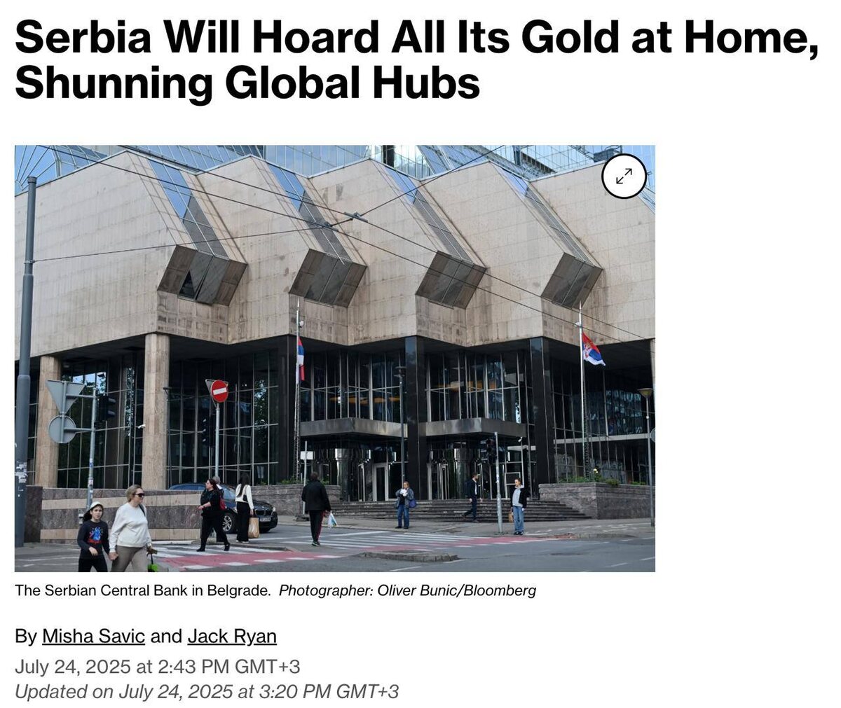 Сербия первой в Восточной Европе планирует вернуть на свою территорию все свои резервы золота на 6 млрд долларов, сообщает Bloomberg Страна решила на время «кризиса и неопределенности» больше не хранить свои слитки в традиционных центрах, таких как Швейцария, Великобритания и США. Значительная часть мировых золотых запасов, оцениваемая примерно в 550 миллиардов долларов по текущим ценам, хранится в хранилище Банка Англии в Лондоне — мировом центре торговли драгоценными металлами. В течение последнего времени в Сербии проходят акции протеста против действующего президента Вучича. В его окружении часто заявляют, что протесты организованы при поддержке Запада с целью смены власти в стране за то, что Вучич отказывается присоединяться к санкциям против России. 👊 НАСОНОВ 🔴