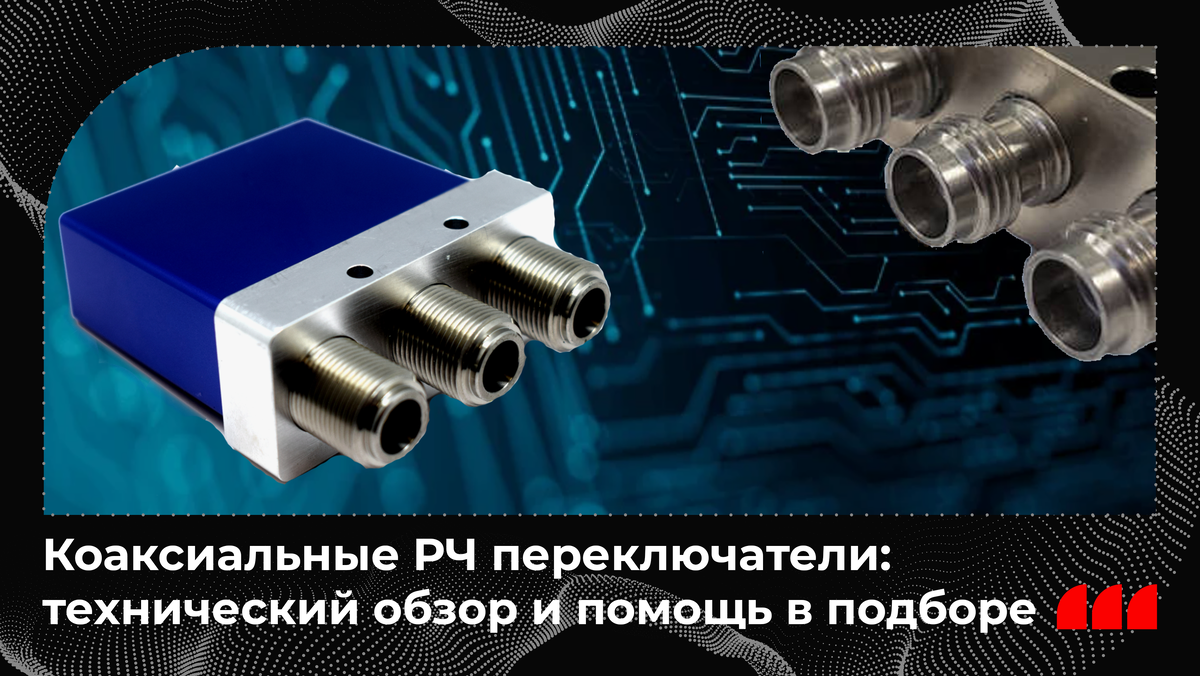 Коаксиальные радиочастотные (РЧ) переключатели — это устройства, предназначенные для переключения сигналов в системах СВЧ и ВЧ связи. Они позволяют перенаправлять сигнал между несколькими линиями или устройствами без искажений, потерь или отражений, критичных для высокочастотных цепей.