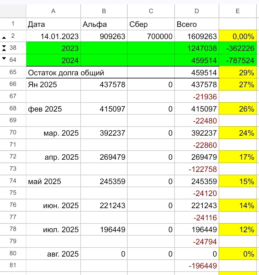 Да, снова вернулась к этой идее - досрочного закрытия остатка кредита - с помощью лайфхака с кредиткой жёлтого банка. Ещё весной тогда помню, что писала об отказе от этой идеи, но прошли пара месяцев, и всё же решилась. Итак, на начало июля у меня оставалось в красном банке 196+ тысяч долга после оплаты ежемесячного платежа. На сегодня осталось - 0 рублей и 0%. 🥳 хоть ещё и не август, а июль, но зуд свободы и желания закрыть остаток кредита быстрее толкал вперёд. И по итогу, мой план с закрытием кредита полностью в октябре исполнился в конце июля. Но я пока ещё не планирую праздновать свободу от кредитов на полную катушку 🤣 и всё почему? Потому что вложила в закрытие кредита я не свои деньги, а с кредитки жёлтого банка по услуге - перевод баланса. Перевод баланса - услуга, когда можно взять беспроцентно на 180 дней (при подписке про) деньги в пределах лимита и погасить кредит или кредитную карту в другом банке. Я взяла 195 тысяч. Причина одна 😁 если мне дают беспроцентно на п
