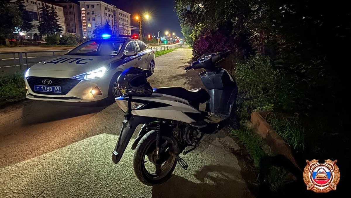 Сегодня ночью в Твери сотрудники ДПС остановили скутер Racer, за рулём которого был 16-летний юноша. Подростка задержали около 02:20 в районе дома № 6 на улице Николая Корыткова, сообщает городской отдел Госавтоинспекции.