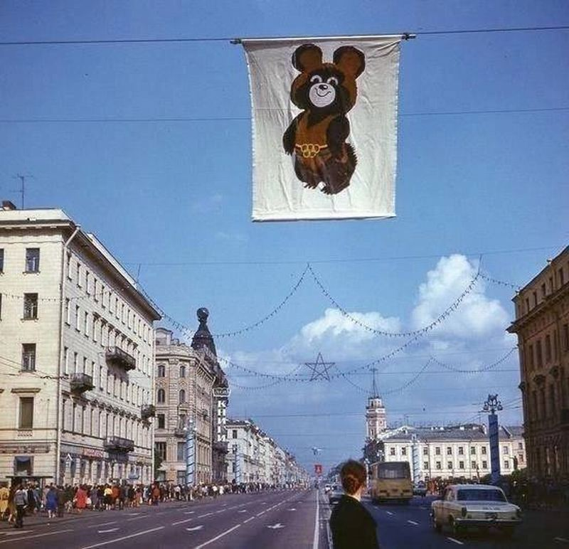 Невский проспект в Ленинграде в 1980 году — самое начало XXII летних Олимпийских игр