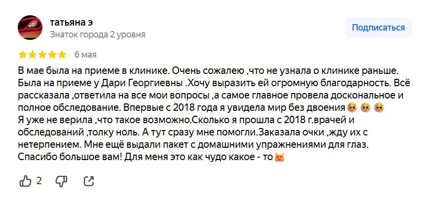 Спасибо за ваши отзывы на Яндексе. Они очень мотивируют нас и помогают новым пациентам сделать правильный выбор.