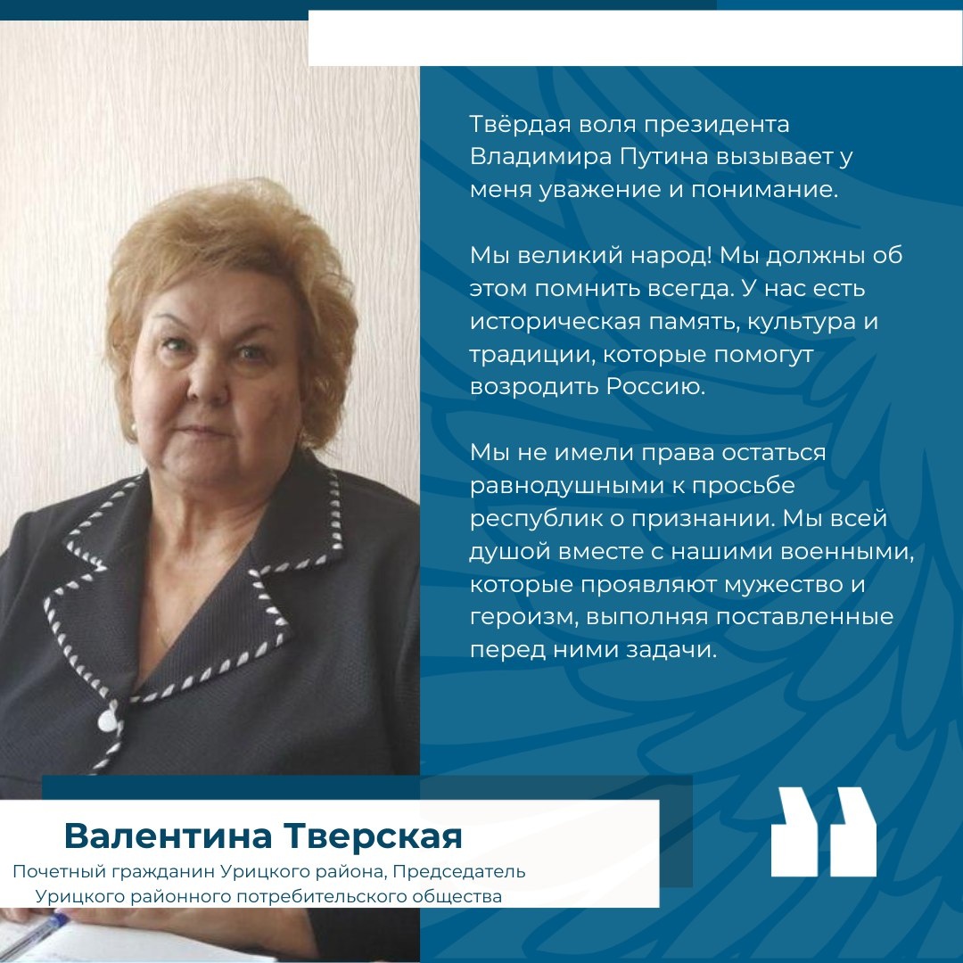 🇷🇺"Мы всей душой вместе с нашими военными, которые проявляют мужество и героизм, выполняя поставленные перед ними задачи" - считает Валентина Тверская, Почетный гражданин Урицкого района, Председатель Урицкого районного потребительского общества. Если Вы желаете подписать контракт на военную службу, за подробностями обращайтесь в военный комиссариат Урицкого, Сосковского и Шаблыкинского районов: 📍 п. Нарышкино, ул. Микрорайон Строителей, д. 6 📞 8 (4864) 72-08-44 Областной пункт отбора на контрактную службу: 📍 г. Орел, ул. Октябрьская, д. 30 📞 8 (4862) 54-03-86 #ПобедаБудетЗаНами #СвоихНеБросаем #ЗаПрезидента #ZаРусскийМир