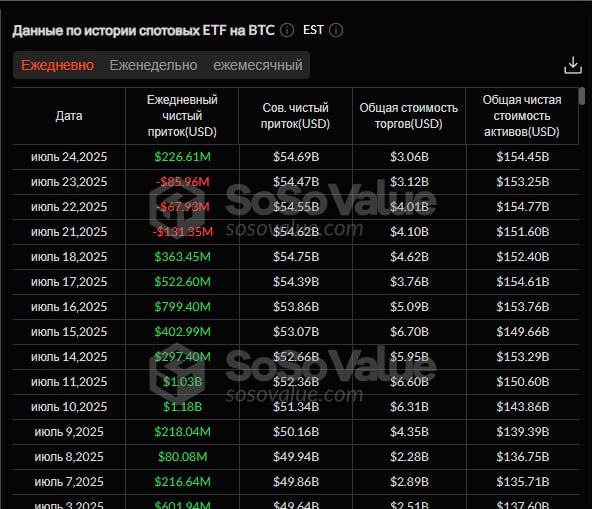 πΈ24 ΠΈΡΠ»Ρ ΡΠΏΠΎΡΠΎΠ²ΡΠ΅ Π±ΠΈΡΠΊΠΎΠΈΠ½-ETF Π·Π°ΡΠΈΠΊΡΠΈΡΠΎΠ²Π°Π»ΠΈ ΡΠΈΡΡΡΠΉ ΠΏΡΠΈΡΠΎΠΊ Π² ΡΠ°Π·ΠΌΠ΅ΡΠ΅ $227 ΠΌΠ»Π½, ΠΏΠΎΡΠ»Π΅ ΡΡΡΡ