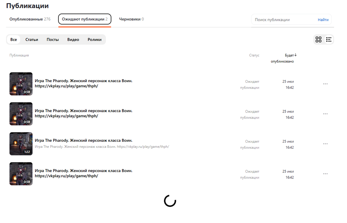 Было запланировано 2 публикации: видео и клип. Но что-то пошло не так. Видео вдруг стало 3 штуки. Если обновлять страницу, то иногда их число доходит до 4.