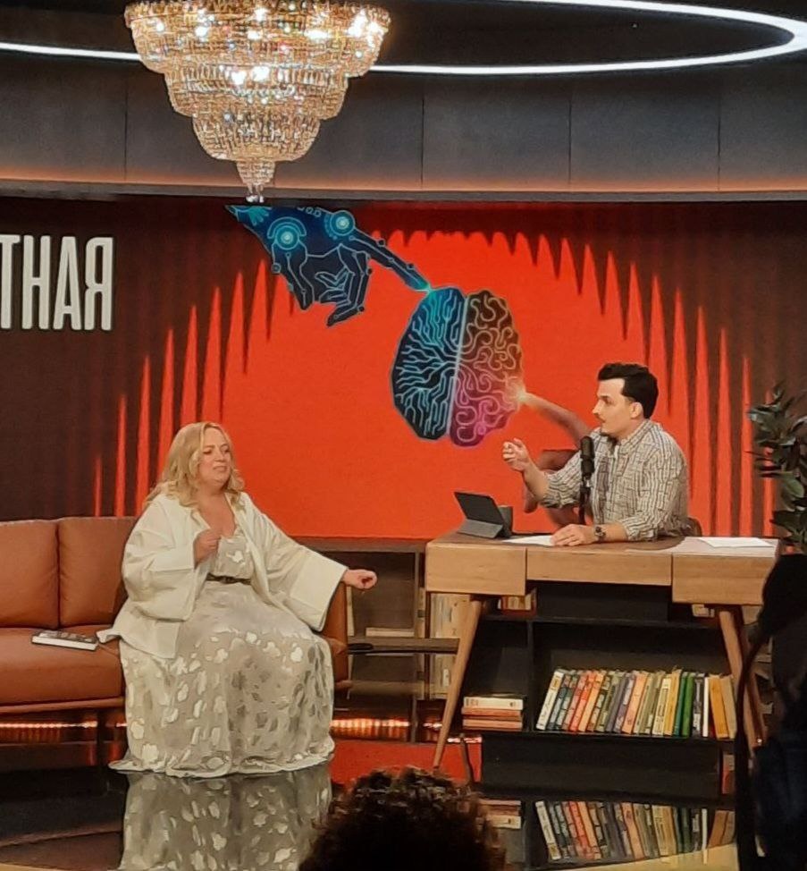 ДОРОГАЯ ПЕРЕДАЧА! Пару слов о закадровой подготовке. Центральный канал пишет ПРЯМОЙ ЭФИР. Они - последние из могикан. Я уже и не упомню, когда люди вот так с открытым забралом выпускали меня в Прямой Эфир. Ну и ходили мальчики по тонкому льду. Дело в том, что программа пишется в 21.00, а у меня перед этим был длииинныыый предлиииннныыыйй рабочий день. Скандальчик в ГД. Потом реально очень важное мероприятие в Совете Федерации, к которому готовилась месяц... В общем, к 21.00 я была просто по нулям. Говорить не могла. Еду на программу и думаю, что делать? Два варианта: Или отменить, но подведу ребят, прямой же эфир... Или буду кивать головой и мычать. Но потом собралась и решила - начну с анекдота про нейросети, а там уж как пойдет... Нуууу, что сказать. Все дело спас Леша Гудошников. Он неожиданно с начала стартовал про книжку "Аминь". Я расстерялась и про анекдот забыла... А так то это был бы незабываемый прямой эфир. Вот анекдотец то: Сидят в камере Гена и Чебурашка. Спрашивает их