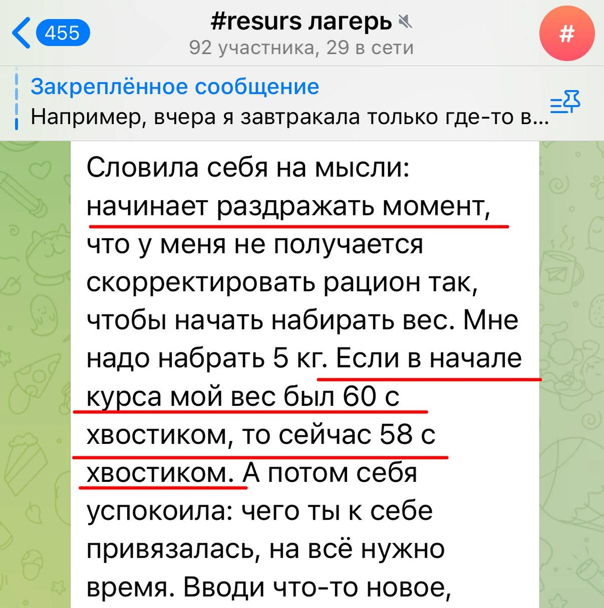 У меня ребята в Ресурсе худеют, будучи уже худыми, с 60 до 58 и не знают, как набрать 😁