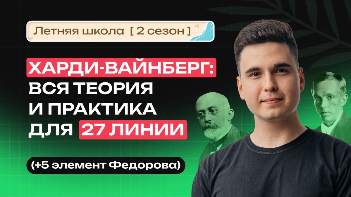 Разбираем Харди-Вайнберга с нуля до полного понимания: сегодня в 14:00 МСК 🥺 Харди-Вайнберг — это лютейший тренд последних лет, его обязательно знать для 27 задачи! Хорошо, что это задание супер предсказуемое и разобраться в ХВ можно за полтора часа 🤨 На стриме будет: — вся теория по ХВ с нуля — оформление задачи — это мега важная часть, без правильного оформления у вас не будет 3/3 — море практики, чтобы вы точно всё поняли! — бонус: разберём 5-й элемент Фёдорова, который был на ЕГЭ в этом году ❤️ Убеждаемся, что Харди-Вайнберг — это легко! Сегодня в 14:00 МСК 👇 ВК: https://vk.com/video-184221081_456263925 YouTube: https://youtu.be/d8kABI5S-h0