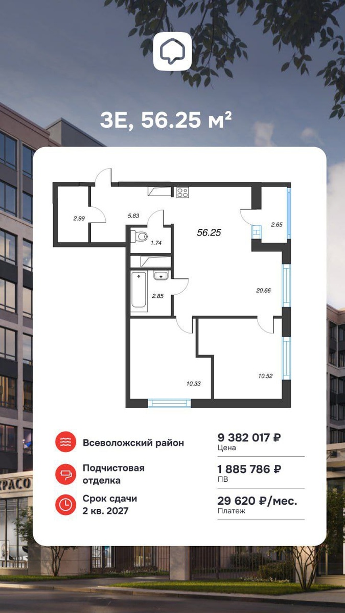 IT-ипотека по ставке 2.5% Fix цена — 166 000₽ за м² Расчет по IT-ипотеке от Сбера: • цена — 9 382 017 ₽ • первый взнос — 1 885 786 ₽ • ставка — 2.5% • платеж — 29 620 ₽/мес. 📍Метро Улица Дыбенко ✅ Комфортная этажность домов - всего 9 этажей. ✅ Закрытый двор без машин. ✅ Общественное пространство для работы и отдыха ✅ Подземный паркинг и гостевая стоянка ✅ Три детских сада 👶🏻 и школа. ✅ Красивый большой двор с ландшафтным дизайном и безбарьерная среда. Игровые и спортивные площадки. ✅ Потолки 3 метра в каждой квартире. Ставьте ➕в комментариях, чтобы получить больше информации о комплексе и посмотреть планировки.