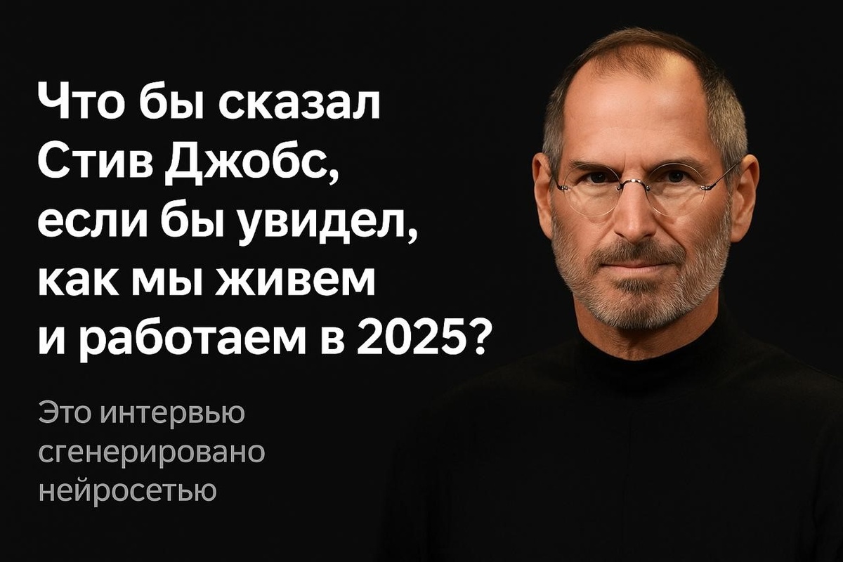 Перед вами — AI-интервью, сгенерированное на основе реальных цитат, речевых паттернов и лидерской философии Стива Джобса. Искусственный интеллект делает заголовки, генерирует коды и сочиняет книги.