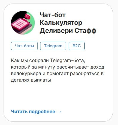 Свежий #кейс на сайте У нас регулярно выходят свежие кейсы на сайтах, чтобы вы могли с ними познакомиться и кайфануть! Сегодня рассказываем про замечательный кейс для Деливери Стафф и Самоката! С помощью нашего бота ребята замечательно и удобно стали работать с велокурьерами. Бот стал инструментом расчета дохода, прогнозирования выручки и тд Кроме того, бот закрыл большое количество однотипных вопросов и снизил нагрузку на менеджмент. Все остались довольны! Подробный рассказ про кейс, конечно, можно почитать на сайте. Ну и конечно приходите заказывайте у нас ботов и для своих велокурьеров тоже! Ссылка на кейс на нашем сайте: https://botcreators.ru/blog/chat-bot-kalkuljator-deliveri-staff/