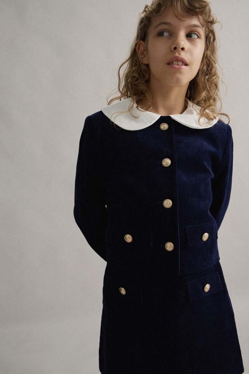 Среди новинок LIMÉ Kids появились жакеты, юбки и куртки из фактурных материалов: твида, бархата и жаккарда