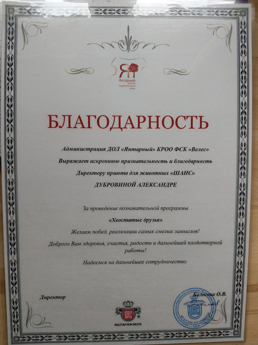 Встреча доброты и понимания в лагере "Янтарный" 🫶‼️ Вчера мы с руководителем группы УЮТНЫЙ ДОМ Ольга Гельвер отправились по приглашению в загородный лагерь «Янтарный». Вместе с нами приехали два наших очаровательных питомца 🐕🦺Глория и Тобик🦮 ставшие любимцами всех присутствующих. Ребята услышали увлекательные рассказы о важности заботы о домашних и бездомных животных😊, познакомились с работой приюта и узнали, как проходит лечение и адаптация животных перед устройством в новые семьи❤️. Вопросы детей звучали искренними и теплыми, показывая заинтересованность и желание помогать. Наши пушистые хвостики получили массу внимания и любви🫶 от ребят, зарядившись позитивом и радостью. 💥Начало реализации совместного проекта «Путь Милосердия», направленного на воспитание культуры бережного отношения к животным и объединение разных поколений вокруг идеи помощи нуждающимся четвероногим друзьям считаем открытым💥 Выражаем огромную благодарность🙏 руководству лагеря «Янтарный» и лично