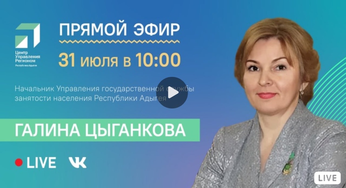 ЦУР Адыгеи 31 июля в 10:00 проведет прямой эфир с начальником Управления государственной службы занятости населения Республики Адыгея