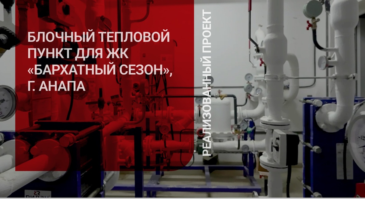 Жилой комплекс «Бархатный сезон» — часть большого проекта «Времена года» на Черноморском побережье. Компания «Ридан» давно сотрудничает с монтажной организацией, которая занимается подбором и установкой оборудования на этом проекте. «На данном объекте мы выполнили монтаж блочного теплового пункта Ридан. Ранее у этого застройщика мы смонтировали оборудование компании „Данфосс“ на 20 объектах. Поэтому при выборе производителя на данные литера выбор был сделан в пользу Ридан, так как подход, команда нам известны, наше сотрудничество было плодотворным…», — отметил Дмитрий Сидоренко, директор, ООО Альфа Снаб. Подробнее о проекте #проекты_Ридан