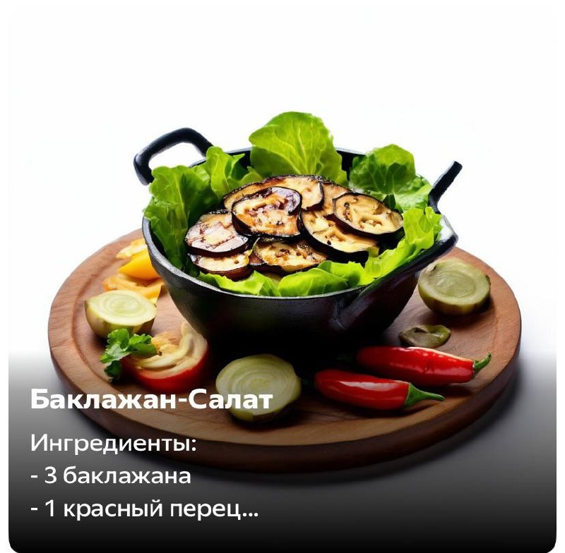 Ингредиенты: - 3 баклажана - 1 красный перец - 2 помидора - 1 луковица - 4 зубчика чеснока - 50 мл оливкового масла - соль и свежемолотый черный перец по вкусу - зелень для подачи Приготовление: 1. Баклажаны нарезать вдоль на тонкие пластинки, посыпать солью и оставить на 30 минут, чтобы ушла горечь. Затем промыть и обсушить бумажным полотенцем. Разогреть сковороду с оливковым маслом и обжарить баклажаны с двух сторон до золотистой корочки. Переложить на бумажное полотенце, чтобы удалить лишнее масло. 2. Красный перец и помидоры нарезать крупными кубиками, лук – полукольцами. Чеснок измельчить. 3. На сковороде разогреть немного оливкового масла и обжарить лук до золотистого цвета. Добавить перец и чеснок, жарить еще 5 минут. Добавить помидоры и баклажаны. Посолить и поперчить по вкусу, добавить зелень. Тушить на медленном огне 10-15 минут, пока овощи не станут мягкими. 4. Готовый салат разложить по тарелкам и подавать горячим.