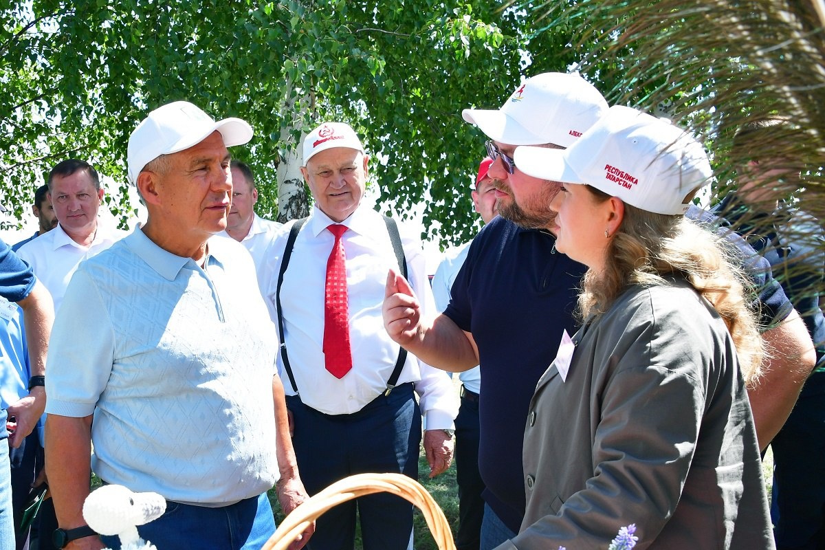🌾🌾🌾 Рустам Минниханов Аксу тата Алексеевски районӗсенче çӗр ӗçченӗсемпе тӗл пулчӗ Иртнӗ вырсарникун Тутарстан Республикин Раисӗ Рустам Минниханов ТР ял хуçалăх тата апат-çимӗç министрӗпе Марат Зяббаровпа пӗрле Аксу тата Алексеевски районӗсенчи хирсенче пулса курчӗ – вырма ӗçӗсем еплерех пынипе паллашрӗ. «Аксу Агро» агрофирмăн хирӗнче республика ертӳçи механизаторсемпе, инвесторсемпе тата районти организацисен тата ял хутлăхӗсен пуçлăхӗсемпе тӗл пулчӗ. Район Ӗçтăвкомӗн ертӳçи Алмаз Мингулов ял хуçалăхӗнчи ӗç-хӗлпе паллаштарчӗ. Малалла