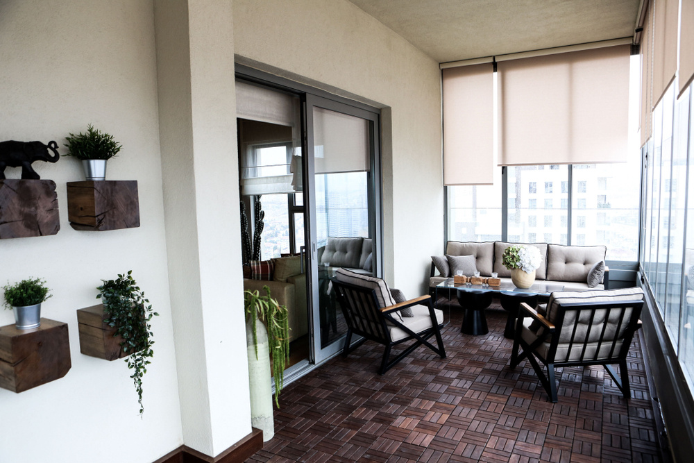Плитка на балконе на полу — удачное долговечное решение. Она не боится влаги, мороза, солнечного света, выдерживает вес мебели и бытовой техники. Его выбирают, если лоджия используется как хозблок, мини-мастерская или полноценное продолжение кухни или гостиной. Плитка сохраняет цвет, не истирается, легко очищается. Минус — холодная поверхность. На открытых балконах это неважно, а вот на утепленных желательно использовать подложку или теплый пол.