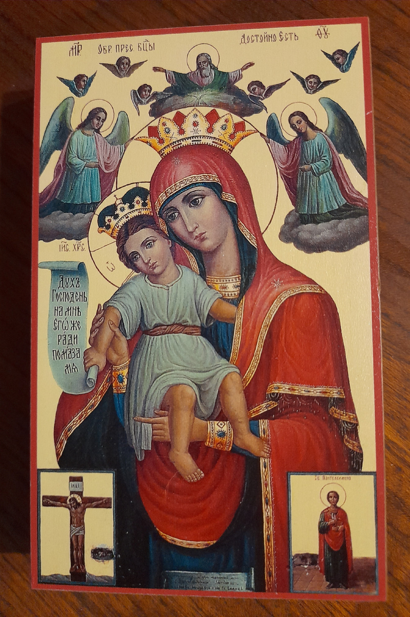 26.07.2025 Когда 26 июля 2012 года родилась моя младшая внучка, я подумала, что 26-е число - какое-то непонятное... Не 25-е, не 27-е или 28-е, которые казались мне более "красивыми" 😊)))... Но почти сразу же, случайно (на самом деле, наверно, неслучайно) я узнала, что 26-е июля - день почитания иконы Божией Матери "Достойно есть". Интересная история связана с иконой и молитвой "Достойно есть". Произошло это в конце X века на священной горе Афон. Первоначальное название иконы было "Милующая" или "Милостивая", но после знаменательного события за ней закрепились, как имя, начальные слова молитвы:" Достойно есть, яко воистину, блажити Тя Богородицу, Присноблаженную и Пренепорочную матерь Бога нашего..." Эту молитву пропел перед иконой невесть откуда взявшийся незнакомец. Когда его попросили записать слова, он начертал слова молитвы перстом на каменной плите, причём камень, словно воск, плавился от его прикосновения. После начертания слов молитвы незнакомец исчез. Монахи сделали заключен