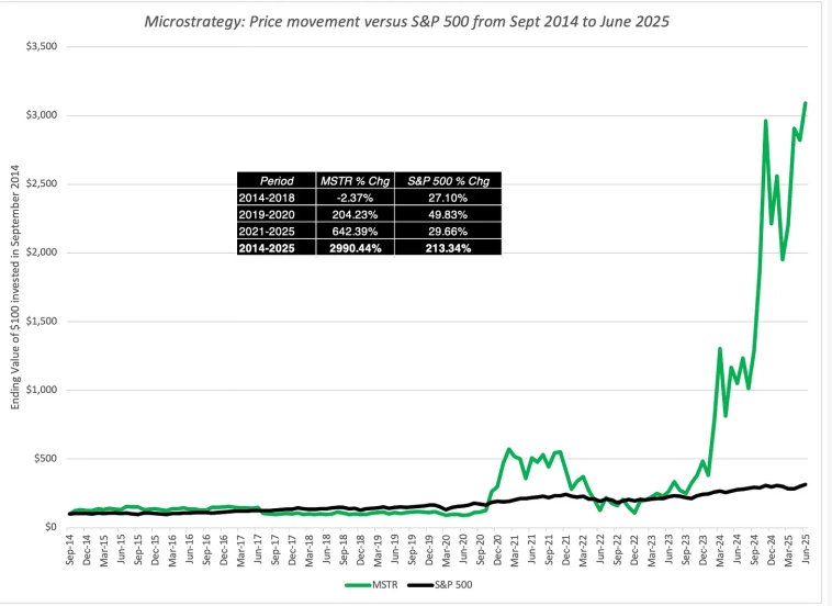 Перед тем как вы погрузитесь в изучение статьи, обратите внимание на тот факт что всё упомянутое в ней не является финансовой рекомендацией для принятие более взвешенного решения просьба провести свое собственное исследование. ________________________________________________________________________ Нельзя отрицать, что одна компания, MicroStrategy, сделала больше для продвижения корпоративного владения Биткоином, чем любая другая, и это обусловлено четырьмя факторами; 1. Победитель на фондовом рынке: За последнее десятилетие курс акций компании вырос, что сделало ее одной из самых прибыльных акций на биржах США: Стоит отметить, что почти все положительные результаты были достигнуты в этом десятилетии, а выигрыши пришлись на последние два года. 2. С ростом (все более и более) зависимости от биткоина: почти все успехи MicroStrategy были достигнуты за счет ее активов в биткоинах, а не за счет улучшения бизнес-операций. Это видно на приведенном ниже графике, где я рассматриваю цены на Micr