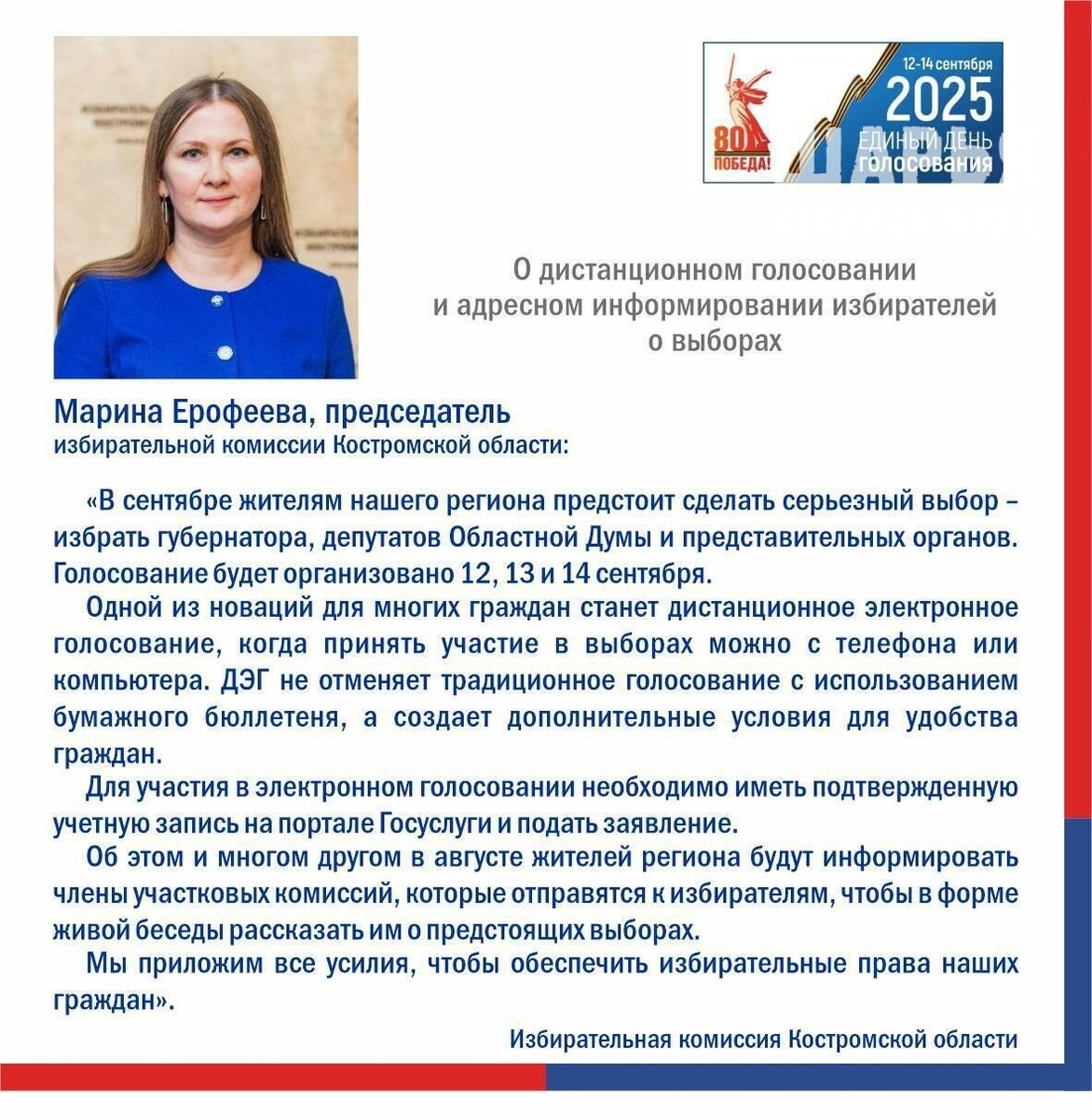 В сентябре в течение трех дней населению предстоит проголосовать. В Костромской области 12, 13 и 14 сентября состоятся выборы губернатора, депутатов областной Думы и представительных органов муниципалитетов. Сделать свой выбор можно не только традиционным способом – на избирательном участке, но и с помощью дистанционного электронного голосования. Подобный электронный вариант голосования уже применялся в регионе и понравился многим жителям, кто желает выполнить свой гражданский долг - проголосовать, но по тем или иным причинам не имеет возможности посетить свой УИК. Совсем скоро жители смогут проявить свою гражданскую позицию и отдать голос за самого достойного, по его мнению, претендента. Шарья – столица мира Крупнейшее городское СМИ Источник