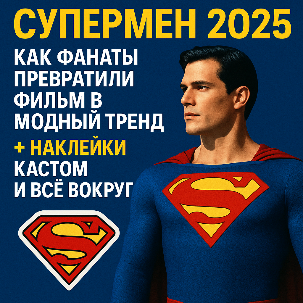 Новый фильм про Супермена стал не просто событием в кино — он взорвал соцсети и вдохновил тысячи людей на творчество. Наклейки, худи, кастомные чехлы, брендированные бутылки и геймпады — всё с обновлённым символом «S». Что происходит? И при чём здесь обычная наклейка? Фильм стал свежим началом для культового героя. Новый костюм. Новая история. И главное — обновлённая эмблема. Она выглядит современно, но при этом остаётся узнаваемой. Яркий, лаконичный логотип «S» идеально смотрится на любом фоне — от футболки до наклейки на ноутбук. Этот знак стал визуальным символом нового витка в поп-культуре. И фанаты не стали ждать официального мерча — они запустили волну кастома сами. Пока DC готовит официальный мерч, фанаты берут инициативу в свои руки. Буквально. Это стало настоящим трендом: сделать свой кастомный Супермен-мерч. Если вам хочется подключиться — всё очень просто. Вот как это делается: На Pinterest, Reddit и Telegram-каналах легко найти шаблоны: PNG, SVG или вектор. Можно использова