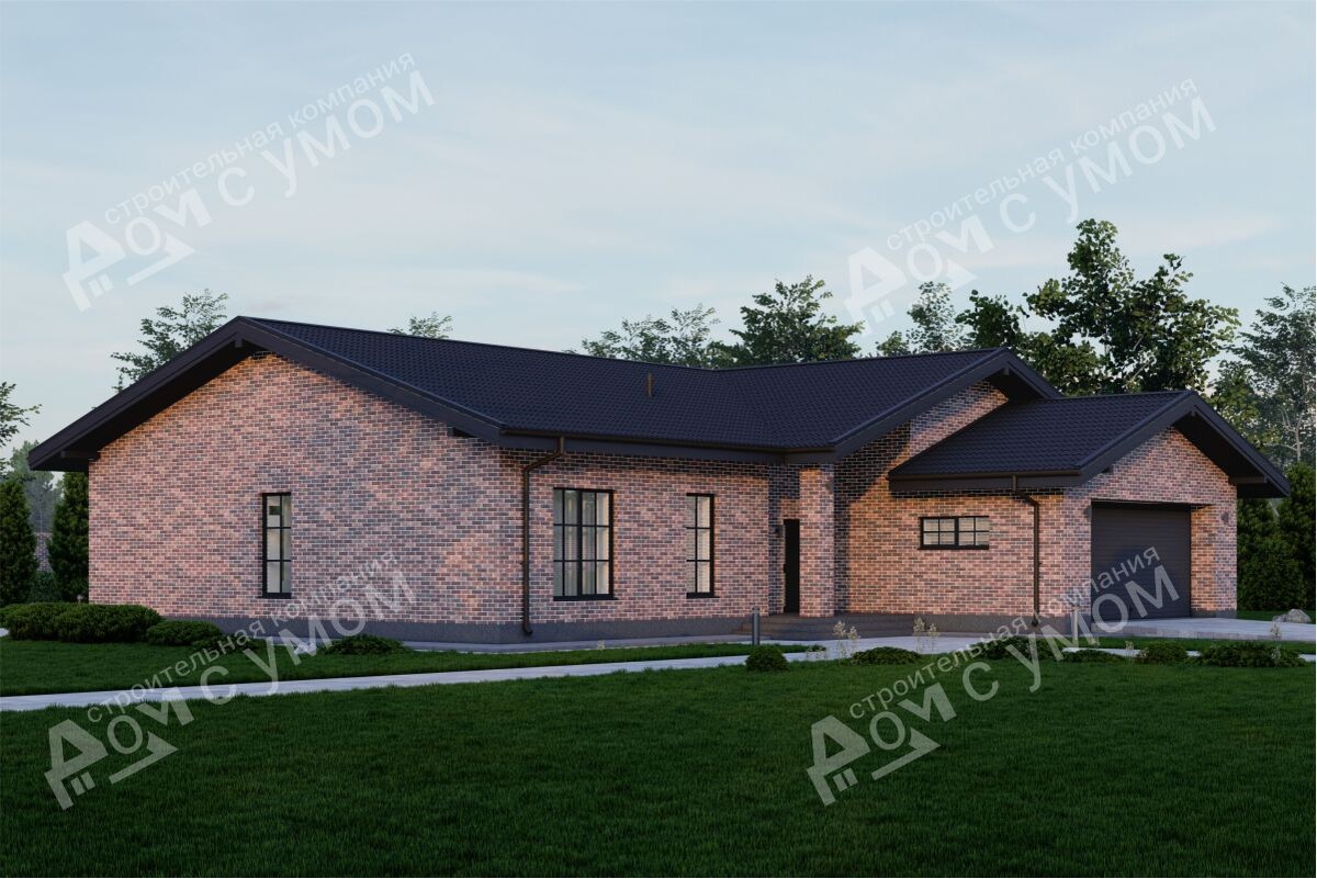 Это одноэтажный дом в стиле Шале для семьи из четырех человек. Проект удачно сочетает стильный внешний вид с рациональным использованием пространства, создавая комфортные условия для жизни. Большие свесы крыши защищают террасу от осадков, а продуманная планировка делает дом удобным для повседневного быта.
