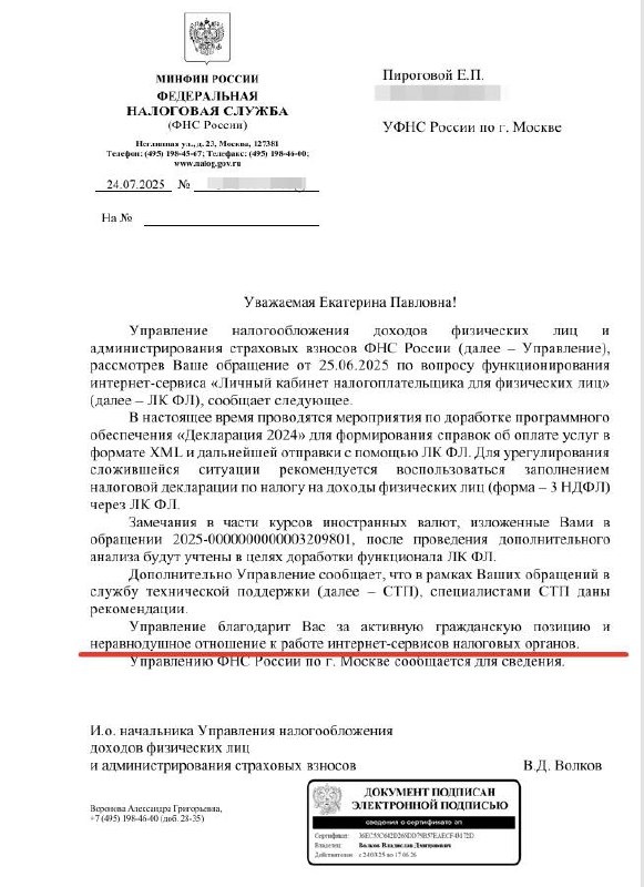 ✉️Письмо от ФНС 📩Не просто письмо я получила, а ответ на мой запрос по части безобразного безобразия в личном кабинете с отправкой деклараций и отображением курса валют. Об этом я писала недавно. И вот ответ, что поправят программу Декларация и проверят что там за курсы валют тянутся и почему они не соответствуют ЦБ. ⌛️Засекаем и ждём⏳сколько понадобиться времени, чтобы провести все доработки. 👩💻Теперь мне хочется написать про старую проблему невозможности отображения убытков при онлайн заполнении декларации в личном кабинете.