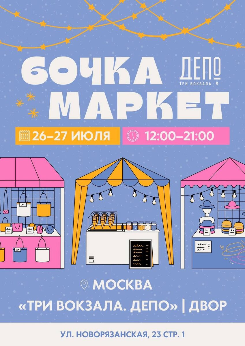📍ДЕПО 3 вокзала Маркет «Бочка» - Летний шопинг от локальных брендов, - мастер-классы, - workshop, - зоны гастрономии, - розыгрыши и лотереи, - фото- и чиллзоны ✨ 26-27 июля 🎟️ Свободный вход С 12:00-21:00 Метро: Комсомольская (выход 13) #москва2025 #июль2025
