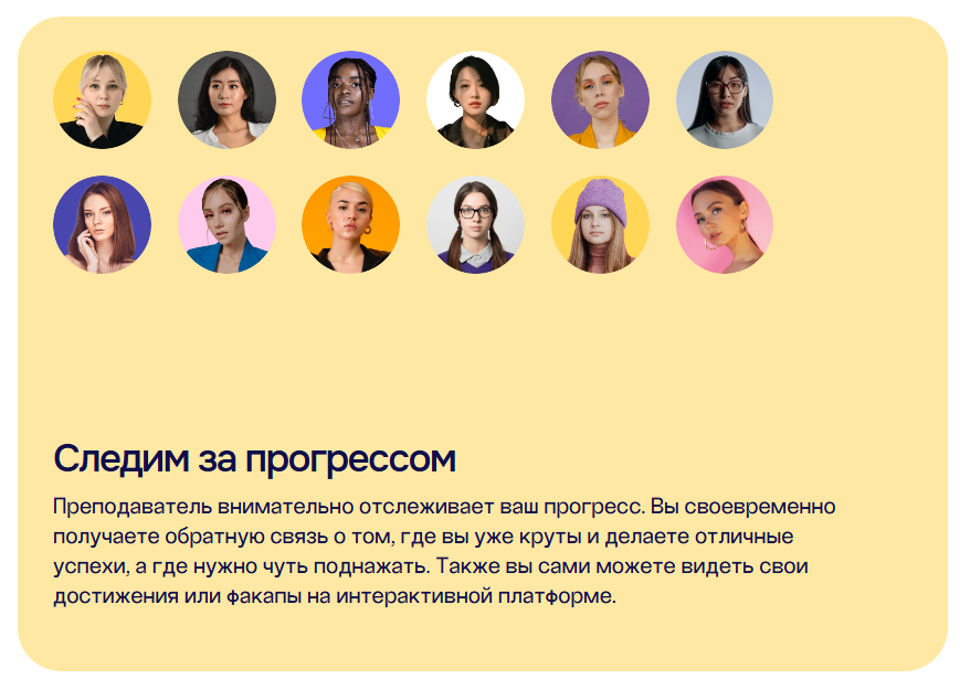 Вы можете записаться на пробный урок прямо сейчас. Это ни к чему не обязывает, но даёт вам шанс посмотреть, как именно проходит обучение, и понять: “А ведь мне подходит!”