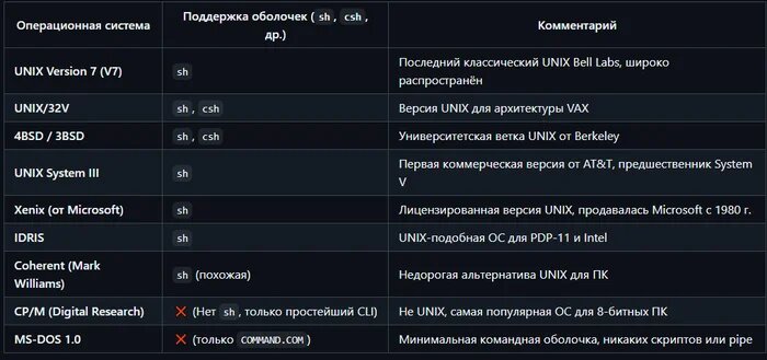 - Эти оболочки поддерживали редиректы, пайпы, переменные, функции и условия — всё, что сделало UNIX мощным инструментом автоматизации.