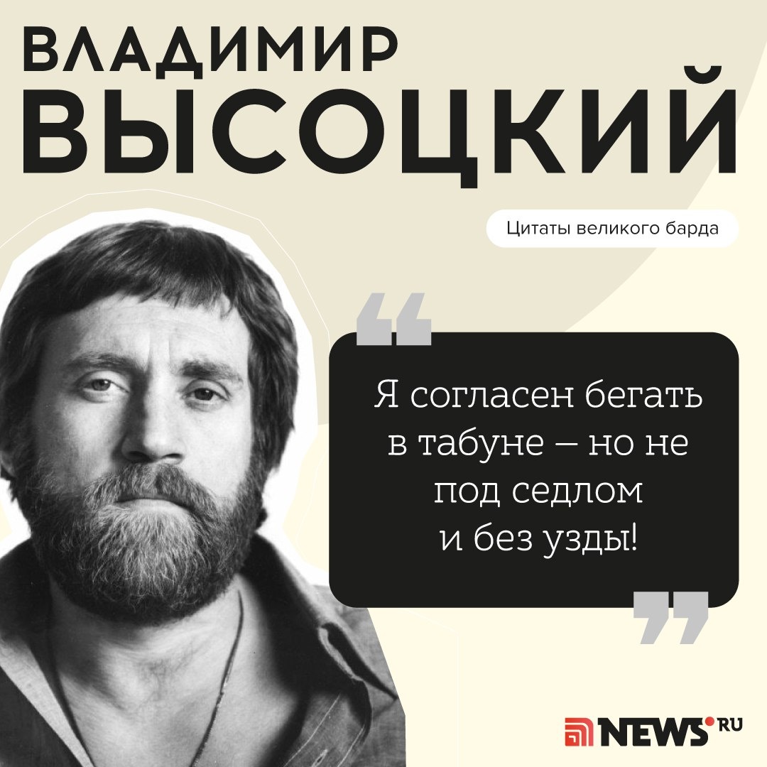 В ответ на пост Собрали яркие цитаты Владимира Высоцкого, актуальные и сегодня. 45 лет прошло со дня его смерти. Вспоминайте легендарные строчки вместе с нами и делитесь в комментариях вашими любимыми высказываниями Высоцкого👇 ⭕ Подписаться | Прислать новость | Буст