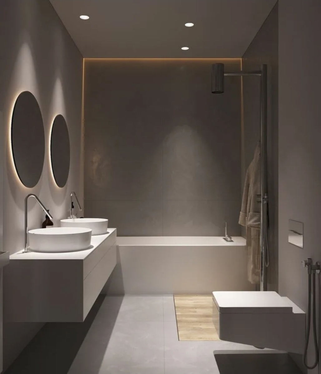 Минимализм — это не про то, чтобы выкинуть всё и мыться в голой бетонной коробке. Это про функциональность, лаконичность и эстетику без лишнего шума. Идеальная ванная в этом стиле должна выглядеть так, будто здесь никто не живёт, но при этом в ней есть всё необходимое. Если ваш текущий интерьер напоминает склад сантехники и косметики, не отчаивайтесь. Сейчас разберёмся, как привести его в божеский вид без ущерба для удобства. Минимализм любит монохром: белый, серый, бежевый, чёрный. Можно добавить акцент, но только один (например, дерево или тёмный металл). 🚫 Ошибка: Радужная плитка, золотые ручки и разноцветные полотенца. ✅ Решение: Однотонная плитка + натуральные текстуры. Никаких открытых полок с 20 флаконами шампуня. Всё, что можно, прячем: - Встроенные шкафы - Ниши за зеркалами - Подвесная мебель с закрытыми фасадами 🚫 Ошибка: Полка с коллекцией гелей для душа 2015–2025 гг. ✅ Решение: Скрытые системы хранения + дозаторы вместо ярких бутылок. Прямые линии,