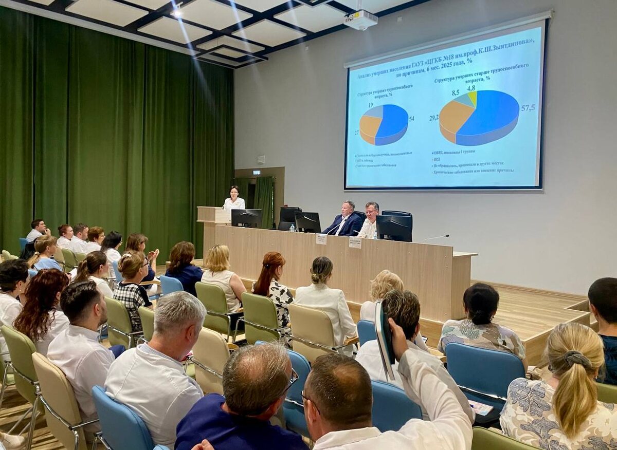 В Центральной городской клинической больнице №18 имени профессора К.Ш.Зыятдинова состоялась врачебная конференция по работе Амбулаторно-стационарного комплекса. Темой обсуждения стали итоги деятельности комиссии по изучению летальных исходов за 6 месяцев 2025 года.