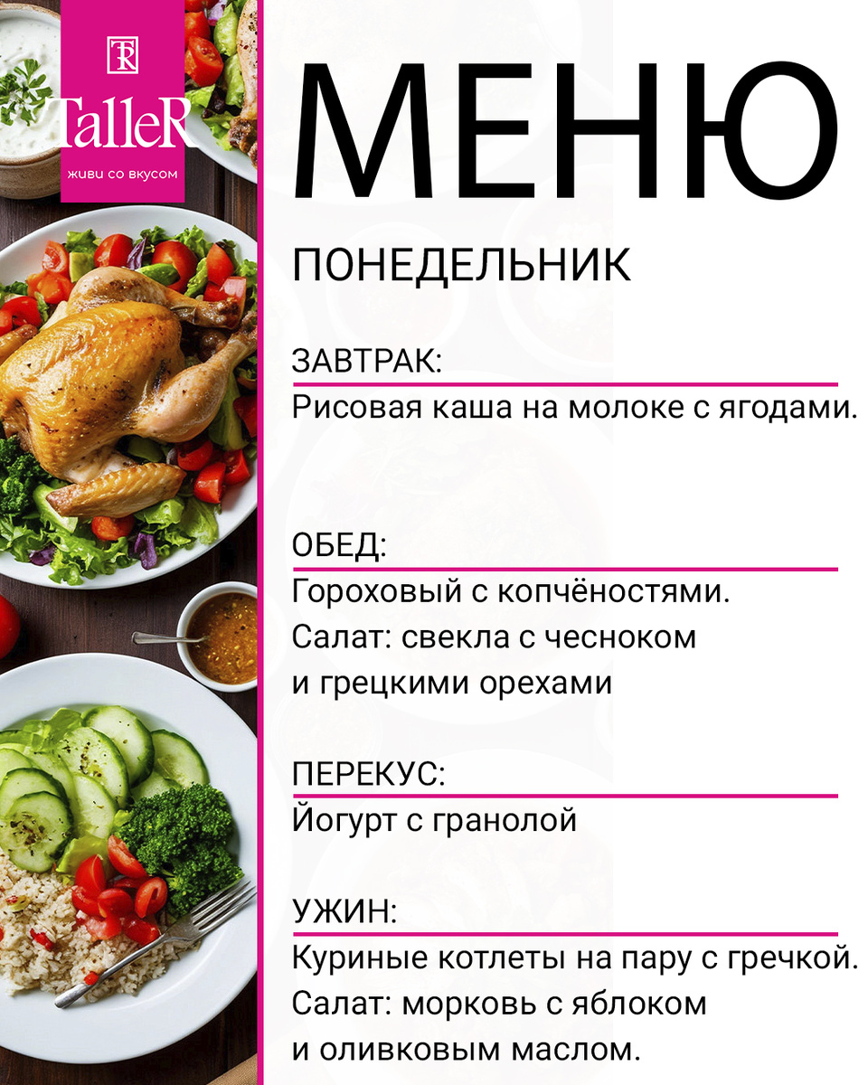 Приятного аппетита и отличной недели! 😊🍴 #ЗдоровоеПитание #СемейноеМеню #ПолезныеРецепты #ЭкономичноеМеню #TalleR