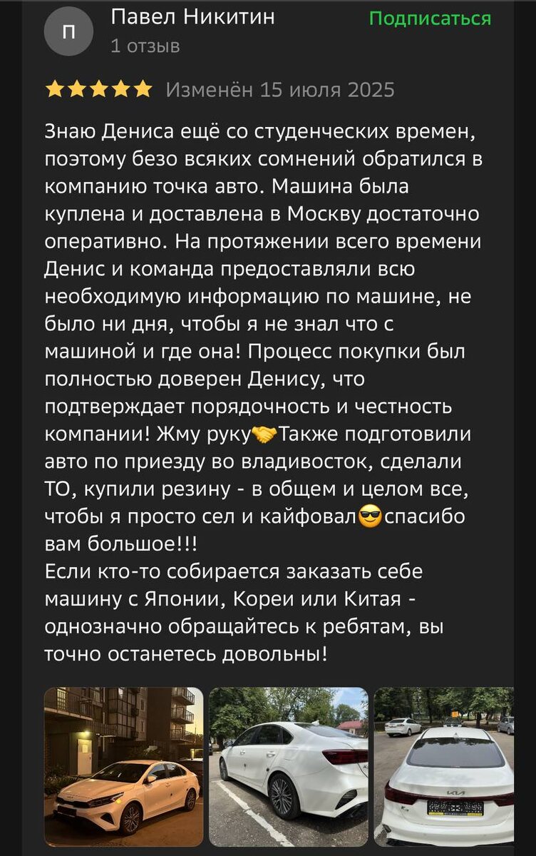 Ваши отзывы, лучшая мотивация для нас 🙌 Напоминаем, что мы работаем по всей России, не важно из какого Вы города! Доставим авто в любую точку нашей страны🇷🇺 ✅ Отзывы в 2ГИС: https://2gis.ru/irkutsk/geo/70000001079267695 ✅ Отзывы в Яндекс картах: https://yandex.ru/maps/org/tochka_avto/64756966508/ Благодарим за доверие и выбор нашей компании🤝 #отзывы_точка_авто