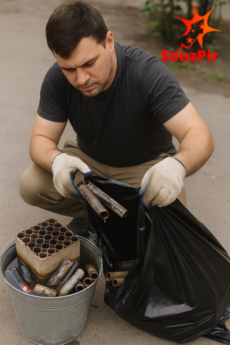 Поговорим о том, как безопасно утилизировать пиротехнику после праздника. Потому что безопасность — это не только до и во время, но и после! Фейерверки — это не просто бумажки. Даже использованные изделия могут содержать остатки пороха или горючих компонентов.