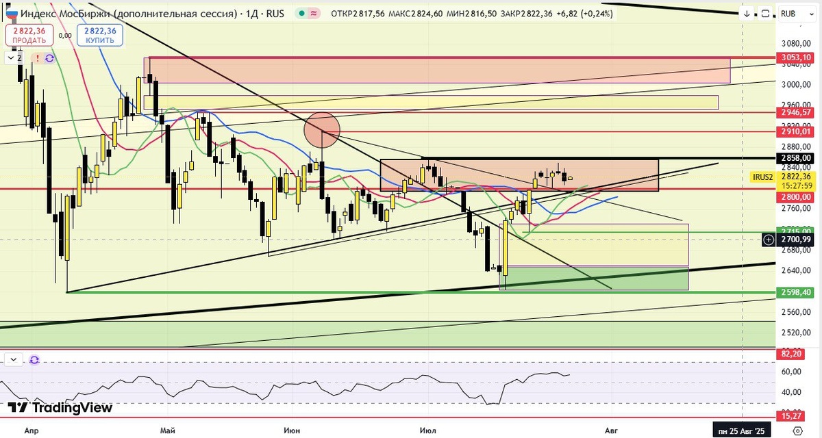 💥 Индекс Мосбиржи сегодня с утра приоделся по праздничному, во всё зеленое, в ожидании значимого события, но как бы к вечеру не пришлось переодеваться из цвета новогодней ёлки в цвет зрелого помидора.