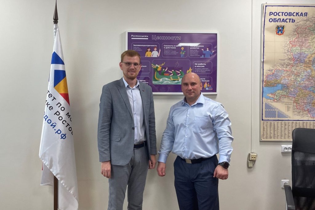 В время стажировки участник президентской программы «Время героев» встретился также с председателем комитета по молодежной политике Ростовской области Олегом Отроковым.