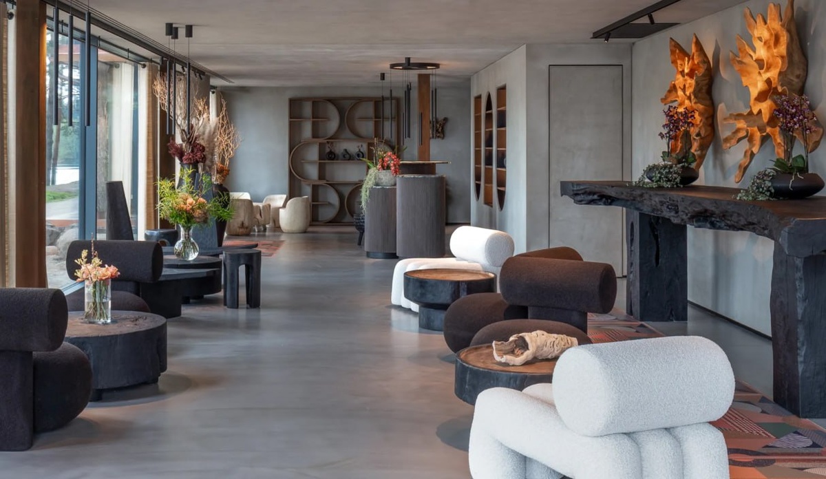 по сути- это бревенчатый дом очень необычным для такого места дизайном интерьера! Такой этнический, испанский, теплый и легко можно там уютно себя чувствовать, как и в русской избе!