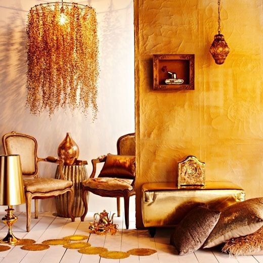 - Используйте более светлые оттенки золота в небольших помещениях.