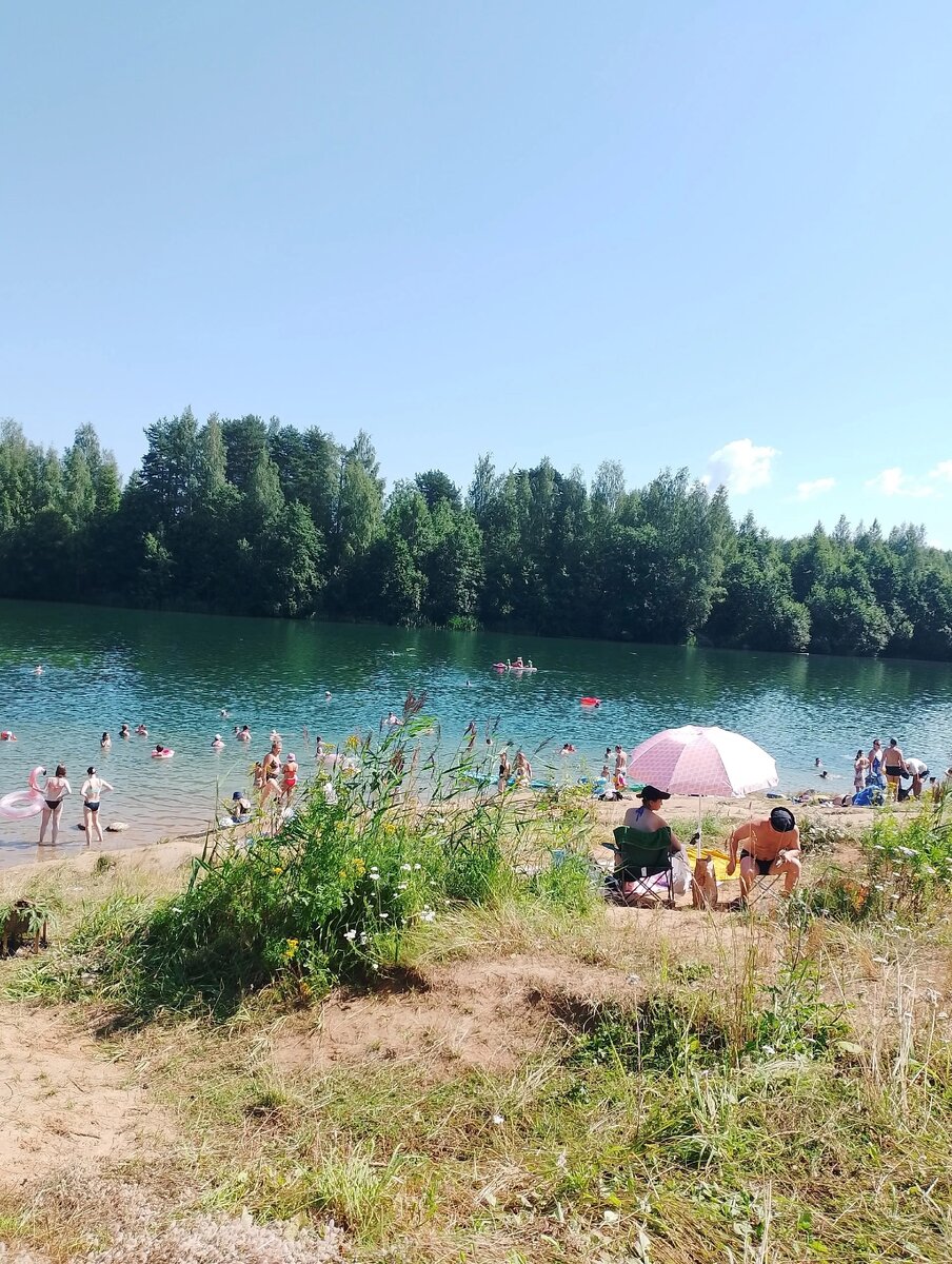Вот и у меня лето настало. Вчера первый раз муж отвёз меня на большой карьер. Маленький карьер от нас ближе, но туда на машине не доехать. А с моим коленом мне просто не дойти. Надо с утра выйти, чтобы к вечеру там быть. Поэтому повёз меня на машине. Что сказать. Сочи скромно курят в сторонке. Будний день, а машину приткнуть негде. Искали место. А представляете, что там делается на выходных? Оставили машину и через волейбольное поле пошли к воде. Народу! Детки, мамашки, компании с шашлыками, палатки, тенты, прокат сапов. Полный аншлаг. В выходные приезжают торговцы шашлыками, водой и другими напитками. Катают на катерах и ватрушках. Прокат сапа 700 руб. в час, и ещё очередь. Водичка тёплая, приятная. Я накупалась, как дитё, до посинения. Так что и у меня лето настало. Стали зреть огурцы. Вчера собрала 2 кг. И свёклу свою сварила. Меня что-то пробило на селёдку под шубой. Ну вот захотелось. А меня долго просить не надо. Всё отварила и сегодня сделала. Приедет сын с семьёй, а у меня