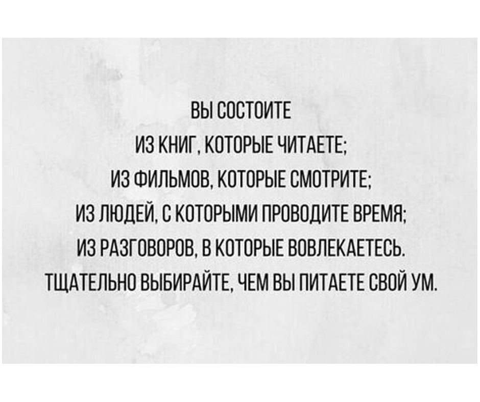 💯 Как говорит Татьяна Черниговская - "всё, что ты посмотришь, прочитаешь, услышишь, остаётся в мозгу навсегда". Поэтому нужно очень тщательно следить за тем, что туда попадает 😉 Хотя, каюсь, у меня часто попадают мемчики и сериалы... Интересный факт - что-то нужное я запоминаю с трудом, а вот этот весь шлак - это пожалуйста, даже стараться не надо запомнить 😁 Почему так, интересно?🤔 #kofesknigoy_stories