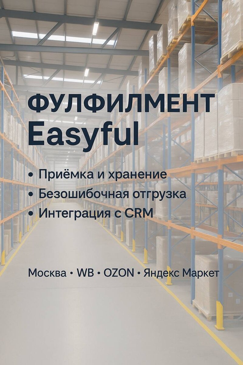 🚚 Easyful — когда логистика работает на вас, а не наоборот Пока кто-то теряет время на сборку заказов вручную, поездки на склады и контроль остатков, наши клиенты масштабируют бизнес 📦 Мы берём на себя всю операционную нагрузку: — Приём и хранение товара — Сборка, упаковка и маркировка — Отгрузка на маркетплейсы без срывов — Интеграция с CRM С нами вы не просто экономите время — вы высвобождаете ресурсы для роста 📍 Москва | Отгрузка на WB, Ozon, Я.Маркет 🕘 Работаем по чёткому регламенту, без выходных 👉 Готовы обсудить сотрудничество — заявки принимаем в чате, наш менеджер свяжется с Вами