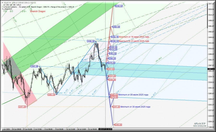 https://basechop.ru/wordpress/?p=51031 Операционный масштаб Minute (таймфрейм h4) Основные технические уровни для торговли Spot Gold – h4 – обзор вариантов движения c 28 июля 2025 года. Предыдущий обзор Spot Gold (таймфрейм h4) от 21.07.2025 г. 13:00 ____________________ Spot Gold Движение Spot Gold-h4 с 28 июля 2025 года продолжится в зависимости от отработки и направления пробоя границ зоны равновесия (3337.00 – 3357.00 – 3375.00) вил младшего операционного масштаба Minuette-h1. Нисходящее движение: При совместном пробое нижней границы ISL61.8 (уровень поддержки 3337.00) вил младшего операционного масштаба Minuette-h1 и предупредительной линии LWL61.8 (3326.00) вил старшего операционного масштаба Minute-h4 нисходящее движение Spot Gold может иметь продолжение к minimum 3282.02 от 09 июля 2025 года и к конечной линии FSL Minuette-h1 (3275.00), с перспективой достижения minimum 3247.25 от 30 июня 2025 года. Восходящее движение: В случае, если состоится пробой верхней границы…
