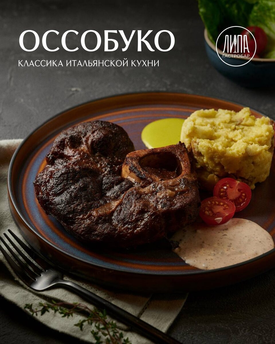 Итальянская кухня — это не только паста и пицца. В каждом её регионе — свои традиции, вкусы и истории. И одна из таких историй — оссобуко. Буквально «osso buco» переводится как кость с дыркой — потому что в центре телячьей голяшки прячется костный мозг. Именно он придаёт блюду ту самую глубину вкуса: тающую, насыщенную, нежную. В «Липе» мы готовим оссобуко из мяса Black Angus по технологии су-вид, томим 12 часов с красным вином, овощами и тимьяном, пока мясо не начнёт само спадать с кости. Это не просто еда — это история, рассказанная через вкус. Приходите и убедитесь сами💚