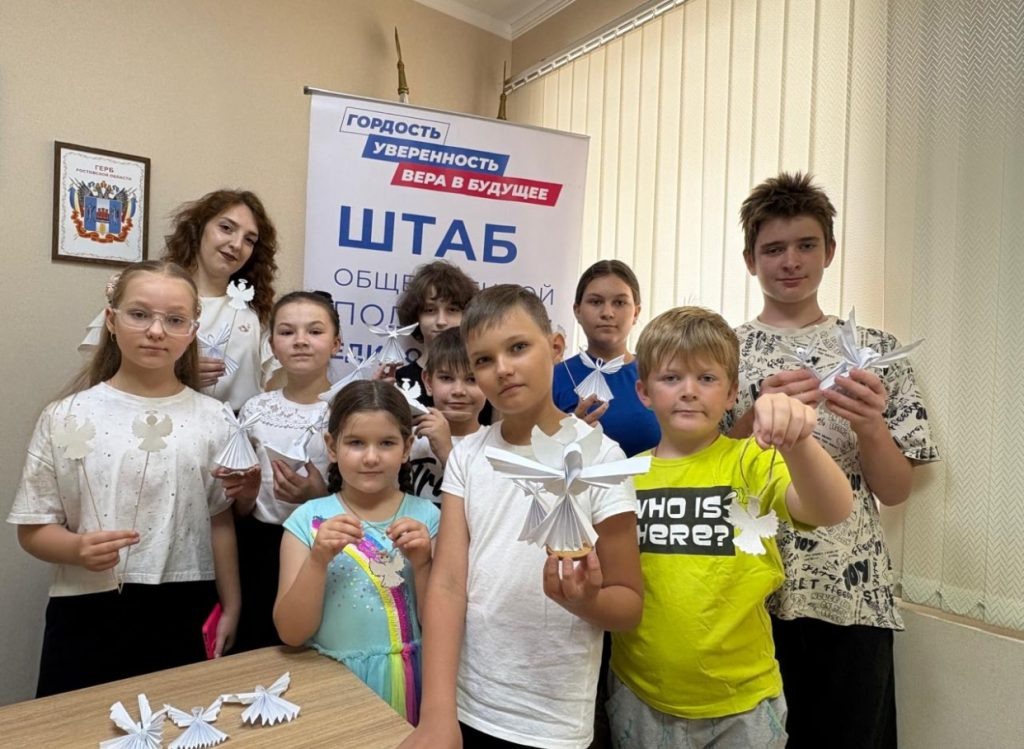 Мастер класс по изготовлению белых ангелочков провели в Штабе общественной поддержки в Ростовской области. В преддверии трагической даты — 27 июля, под руководством активиста местного отделения «Молодой Гвардии «Единой России» Ирина Мириндя, воспитанники КДМО «Донцы» изготовили бумажных белых ангелочков в память о маленьких жителях Донбасса, погибших под огнем боевиков ВСУ. Бумажных ангелочков ребята раздали жителям района, и напомнили им о дне памяти детей – жертв войны в Донбассе.