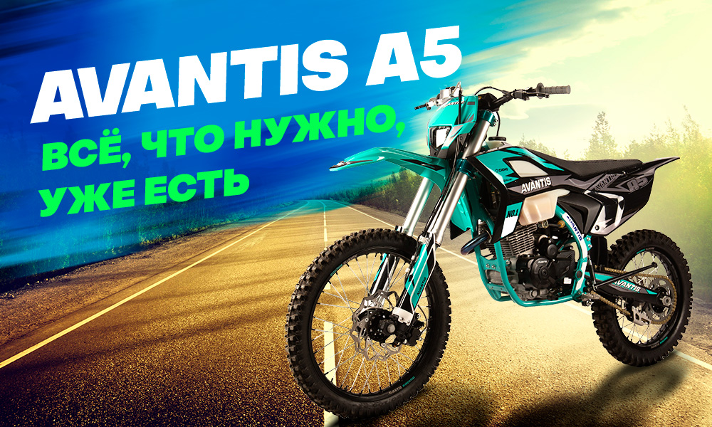 Avantis A5 — это техника для тех, кто уже сделал первые заезды на эндуро, распробовал и готов к следующему уровню. Модель построена на базе проверенного мотора PR300, но отличается от Avantis A4 более высокой посадкой, агрессивным дизайном и расширенной комплектацией. Если вы ростом выше 170 см и чувствуете, что пора двигаться дальше, но ещё не хотите связываться с полноразмерными 450-ками — Avantis A5 идеально подойдёт под ваш запрос. Двигатель: ZS РR300 (271,З см³) Карбюратор: Nibbi РЕ 30 Мощность двигателя: 28 л.с Охлаждение: воздушное Объем топливного бака: 10,2 л Колёсная база: 1480 мм Дорожный просвет: 315 мм Высота по седлу: 930 мм Сухая масса: 125 кг — Настраиваемая подвеска с регулировками на сжатие, отбой и преднатяг; — Алюминиевый маятник и прогрессия на игольчатых подшипниках; — Складные рычаги-«неломайки» (CNC); — Руль Fatbar из прочного 7075-го алюминия; — Влагостойкое противоскользящее сиденье; — Яркая LED-фара (блок из 5-ти светодиодов). Мотоцикл сделан на базе мотора Z