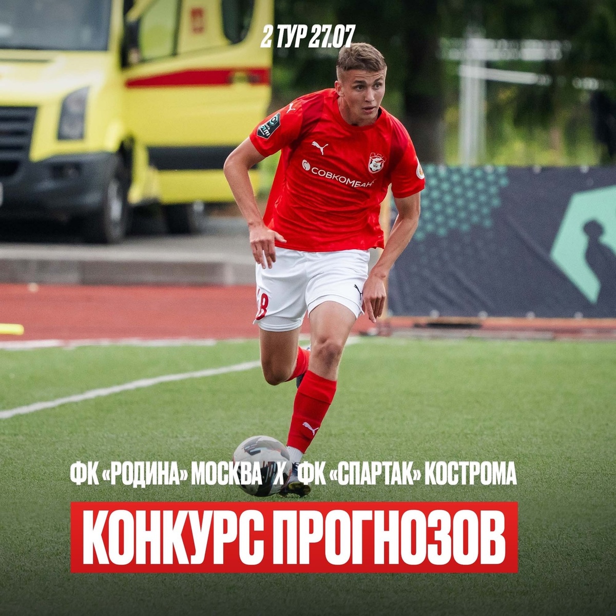 В официальных соцсетях ФК организовали конкурс прогнозов Администрация костромского «Спартака» организовала конкурс прогнозов. Участникам необходимо предугадать исход грядущего матча со столичной «Родиной». Напомним, игра с московскими противниками состоится уже в это воскресенье, 27-го июля. В 18:30 фанаты красно-белых соберутся на стадионе «Арена Химки». Для костромских болельщиков выделят отдельный бесплатный сектор, а добраться до Москвы поклонники «Спартака» смогут на специальном автобусе. Чтобы принять участие в конкурсе, необходимо написать исход матча, счет, автора гола и свое ФИО в комментариях под постом. За правильные ответы болельщики будут получать баллы. «Отредактированные и написанные после старта матча сообщения не участвуют в конкурсе, к конкурсу допускаются только ответы, оформленные по шаблону выше, участвовать можно только на одной платформе», — добавили в пресс-службе футбольного клуба. Читайте также: