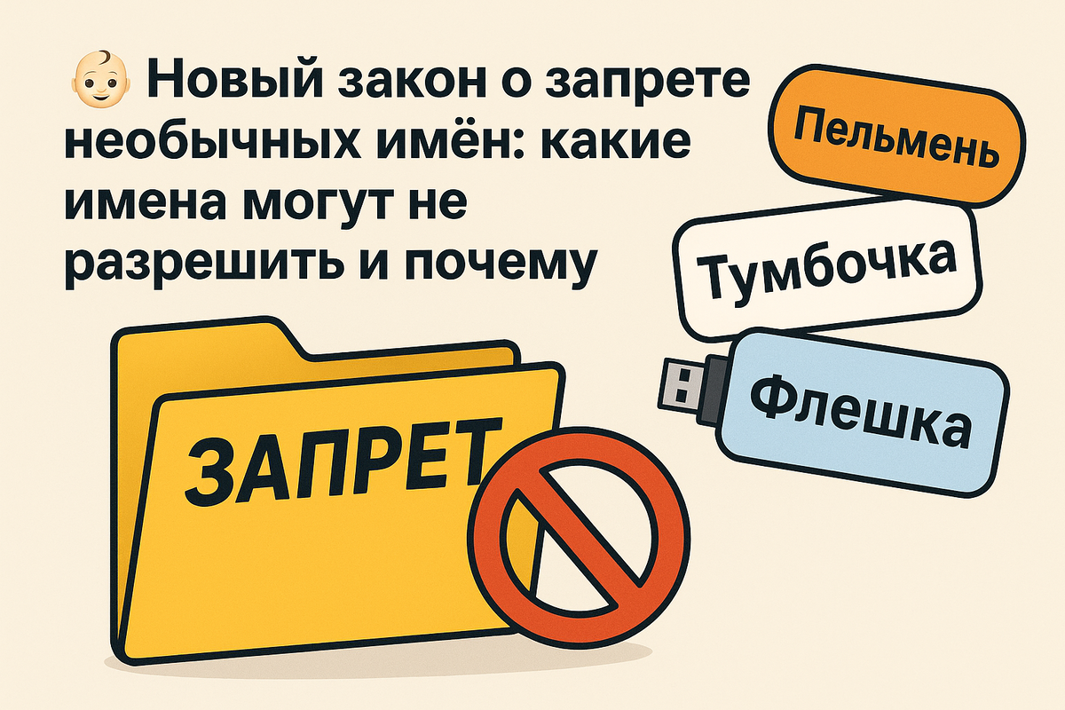 Что конкретно планируют запретить? Кто решает, нормальное имя или нет? И могут ли вас вообще заставить переименовать ребёнка? Рассказываем просто и по делу👇 За последние годы в ЗАГСах появилось слишком много необычных заявлений. Родители называли детей предметами, брендами, частями тела и даже животными. Но у государства логика простая: Вот как может работать новый закон: Примеры из реальной практики: Имена, содержащие: Можно ли будет назвать ребёнка в честь бабушки с необычным именем?